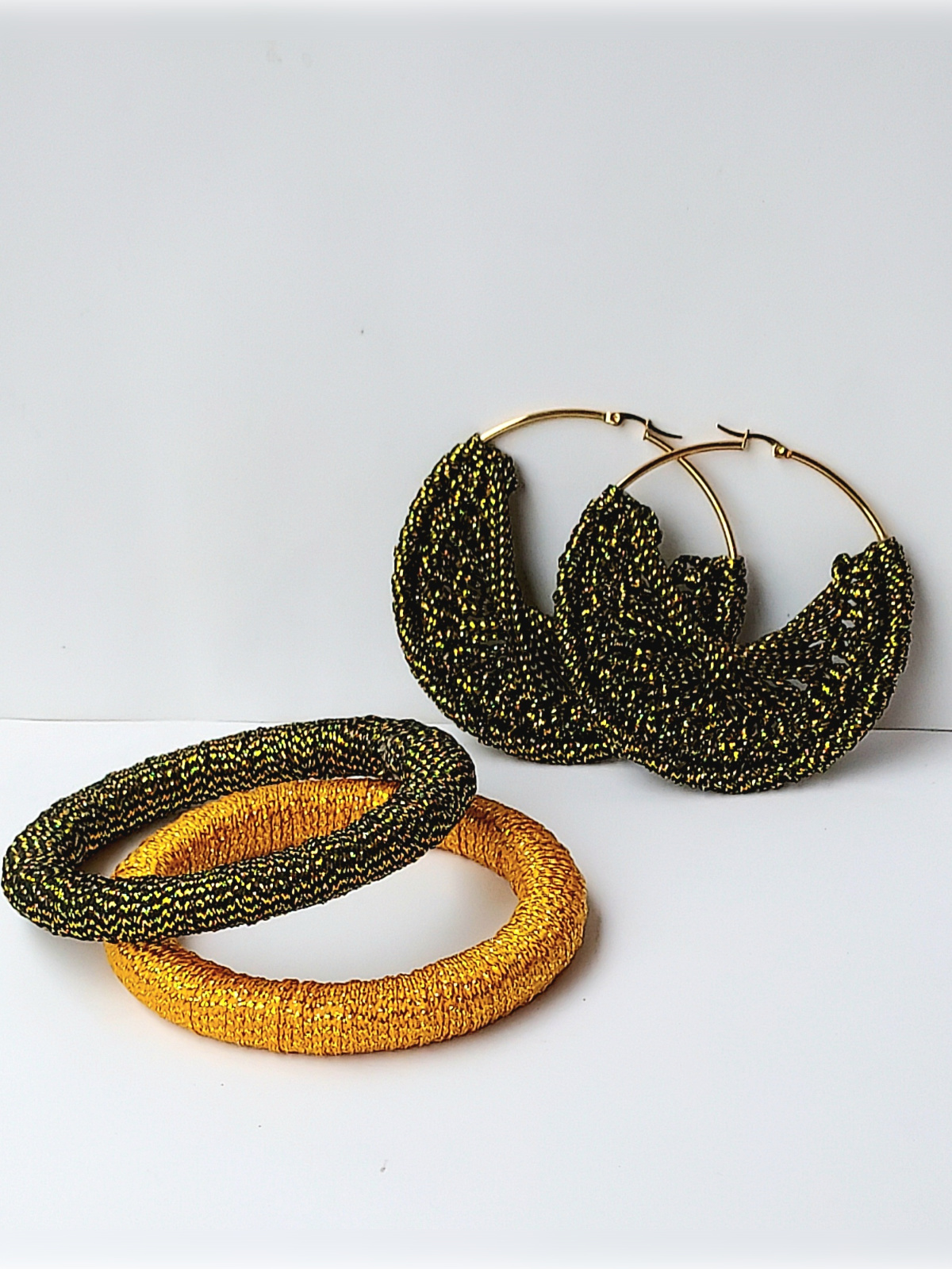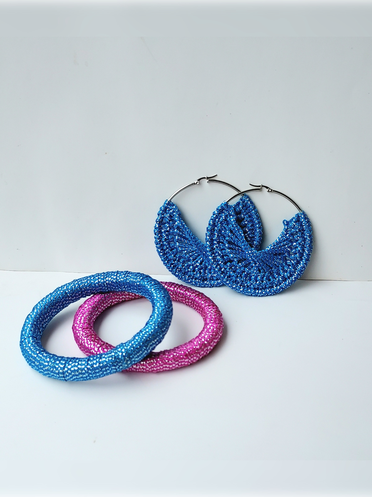 Bracelets en bois recouverts à la main de laine brillante, pour un rendu à la fois lumineux et texturé. Ces pièces aux couleurs vibrantes sont pensées pour illuminer votre style, que ce soit pour une occasion spéciale ou pour réveiller une tenue du quotidien. Associez-les à nos boucles d’oreilles crochetées disponibles sur notre site pour une parure cohérente et stylée.