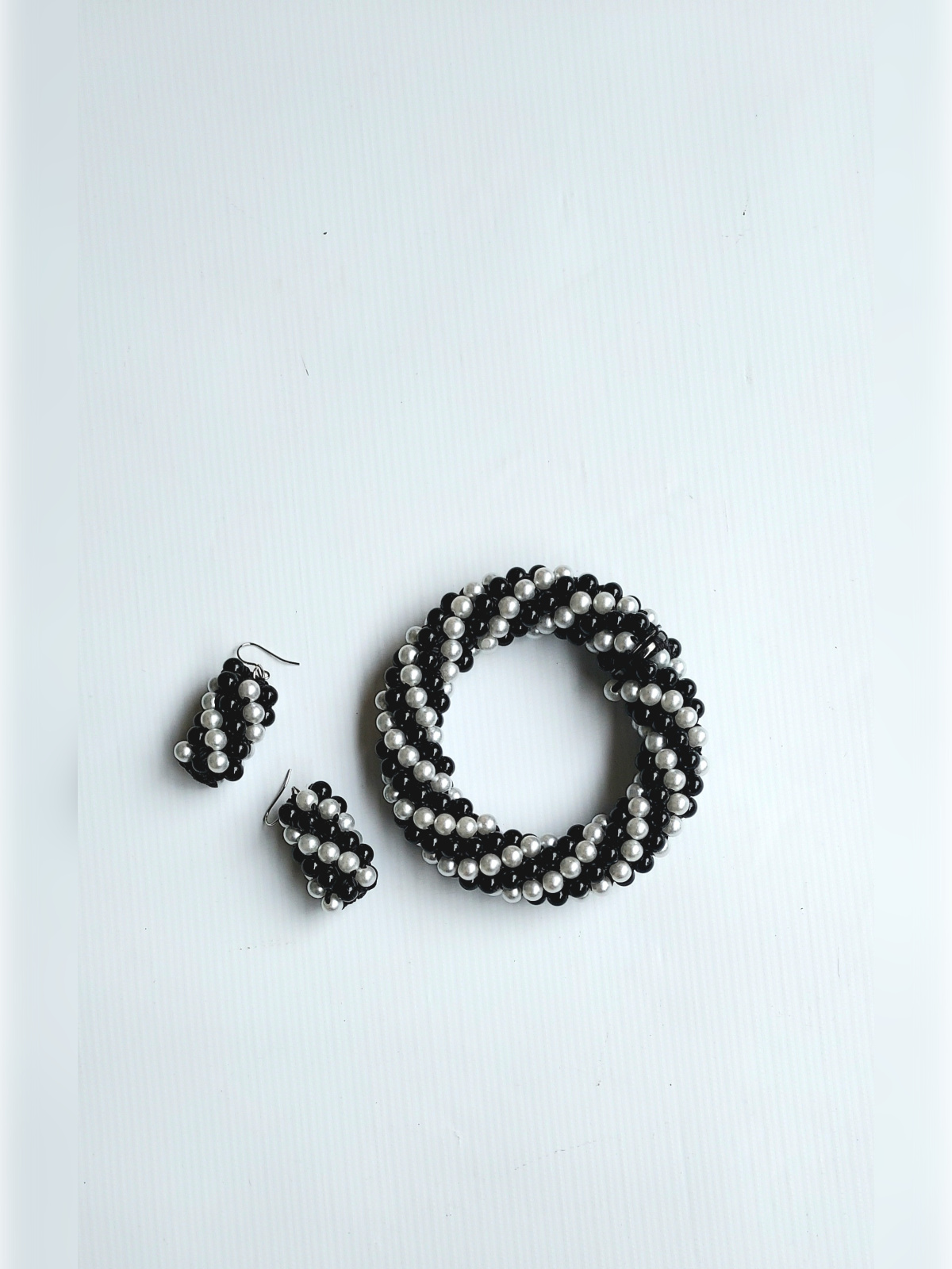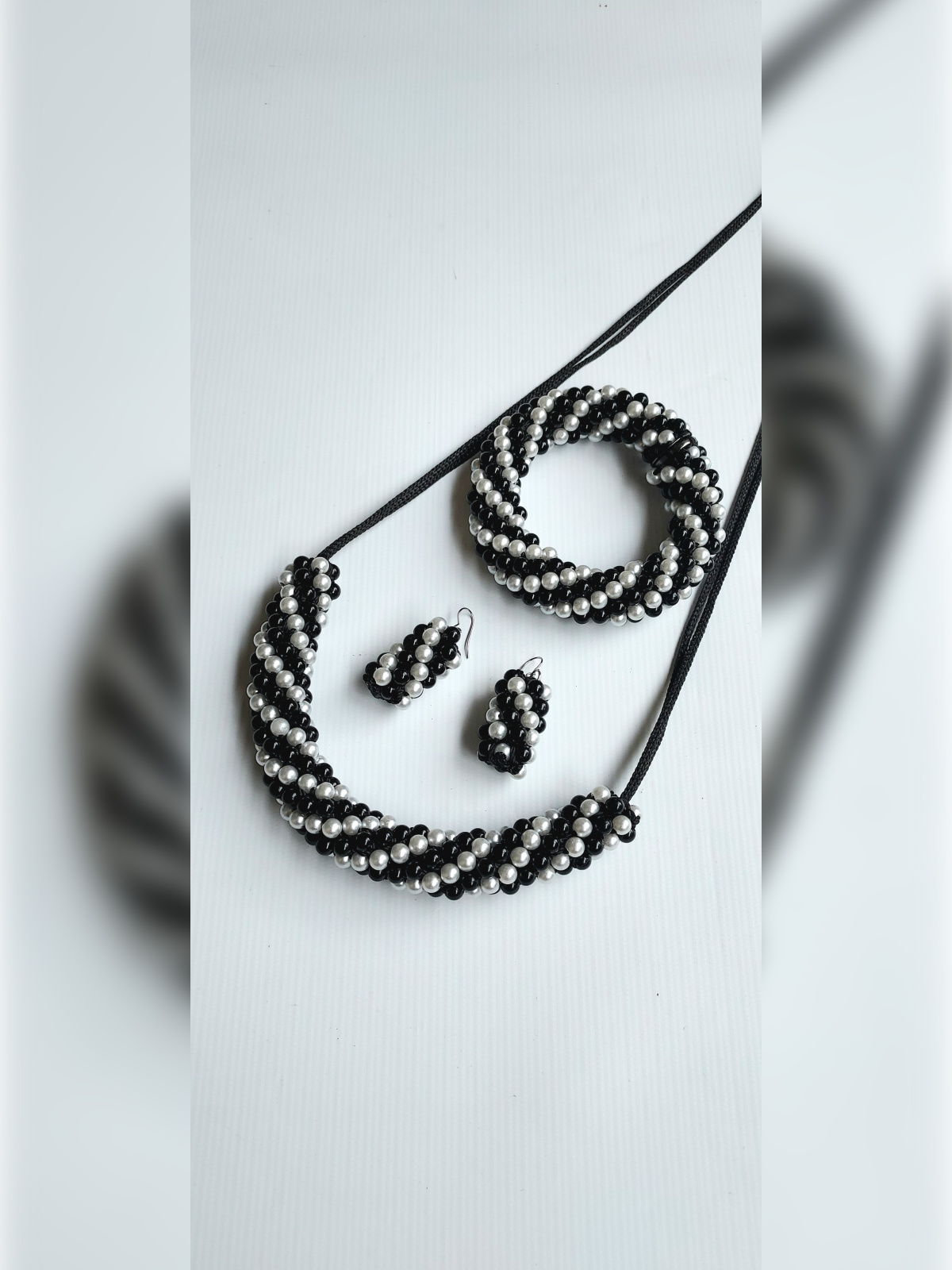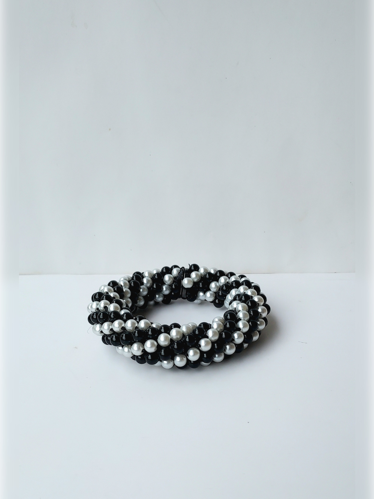 – Matériaux : Perles plastiques, fil noir résistant