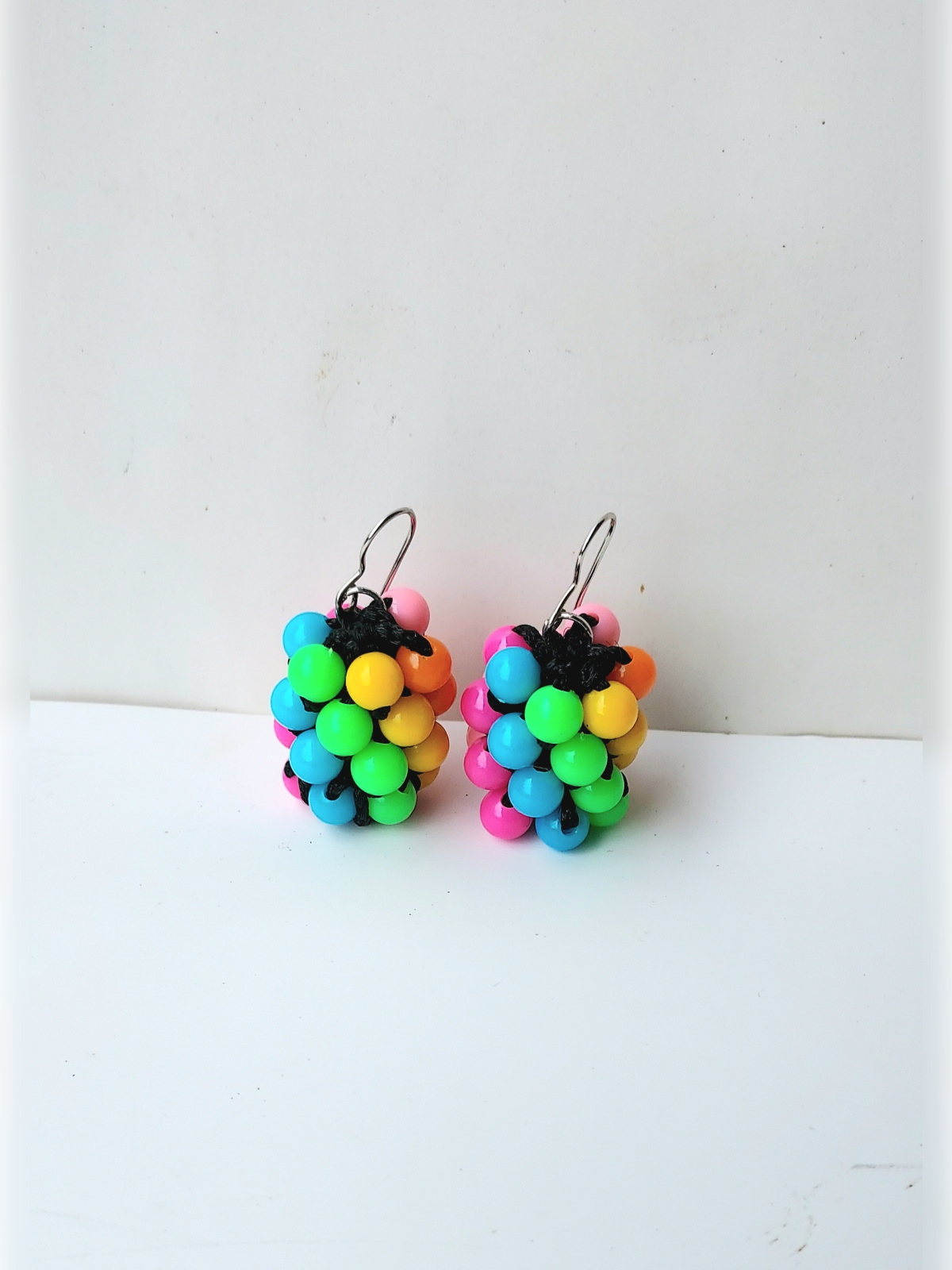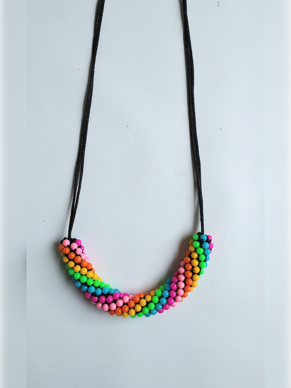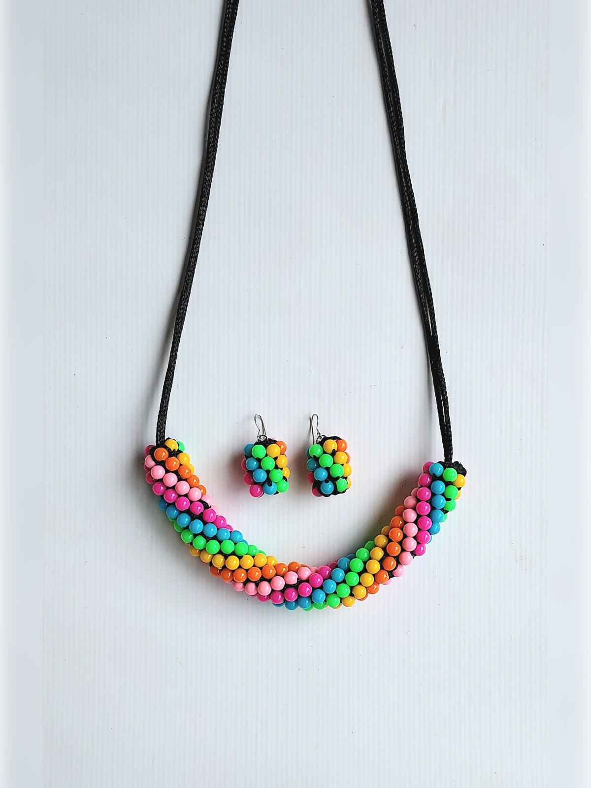 Un ensemble vibrant et joyeux composé d’un collier semi-rigide et de boucles d’oreilles assorties, entièrement confectionnés à la main avec des perles en plastique de couleur vive. Parfait pour réveiller une tenue unie ou affirmer votre style en toute liberté.
